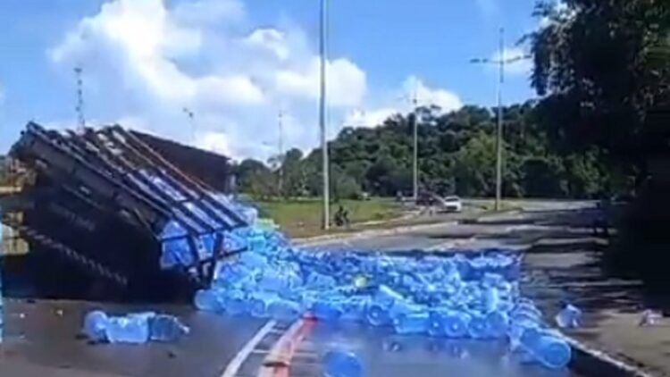 Em um vídeo enviado ao BNews, é possível ver o caminhão e os garrafões espalhados pela via. De acordo com a Transalvador, o acidente aconteceu na alça de acesso à avenida, afetando quem sai da Avenida Paralela.