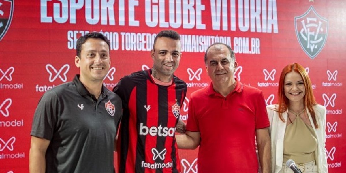 Na manhã desta segunda-feira(22), o Vitória apresentou oficialmente o meia Luan, novo reforço da equipe. Na coletiva, esteve presente junto com o atleta o presidente do clube, Fábio Mota, o diretor de futebol, Ítalo Rodrigues, e Nina Sag, Porta-voz e diretora de comunicação da Fatal Model, patrocinadora do Leão.